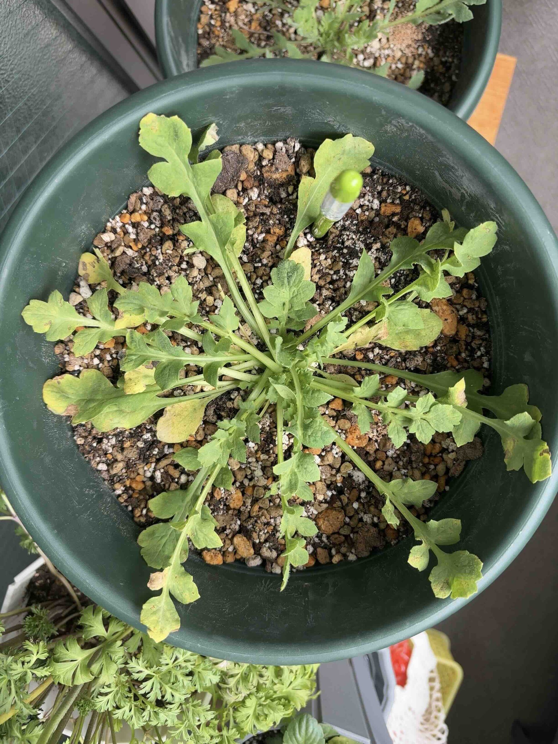 新芽の外側が茶色いし緑のまま枯れている葉もあり…